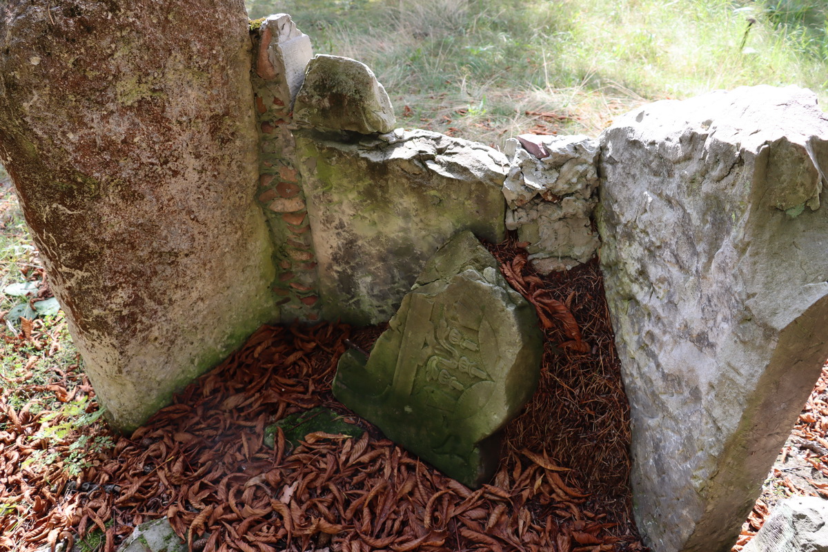 Several tombstones have been preserved in the cemetery. Unsecured area.